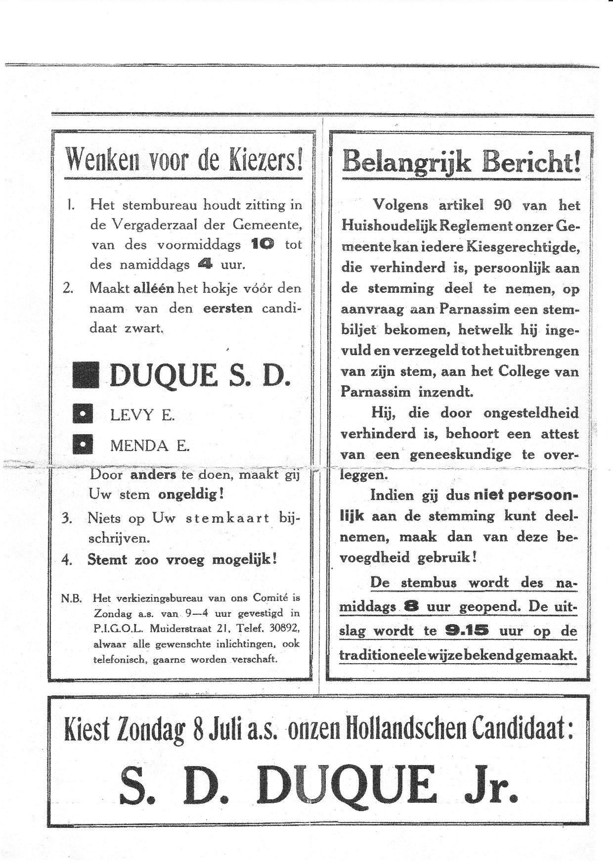The elections took place on 8 July 1923. From his daughter, Mrs. Aleng-Duque I got below pictures & flyers.