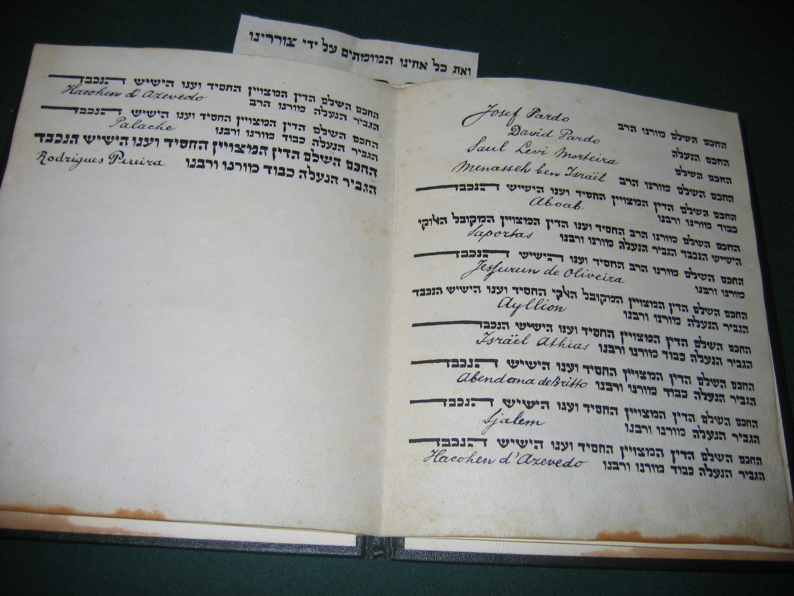 [0] For the four corner-stone placers in 1671, see de Castro: de Synagoge .. te Amsterdam, reprint 1950 page 33 [1] According to prof. H. Salomon and D. Cohen Paraira, Abraham à Cohen d’Ereira is Abraham Cohen de Herrera, a religious philosopher and cabbalist. According to Salomon, Ereira is a “portugesing” from his Spanish nameThat he had the title of chacham can be seen on his burial card. T Professor