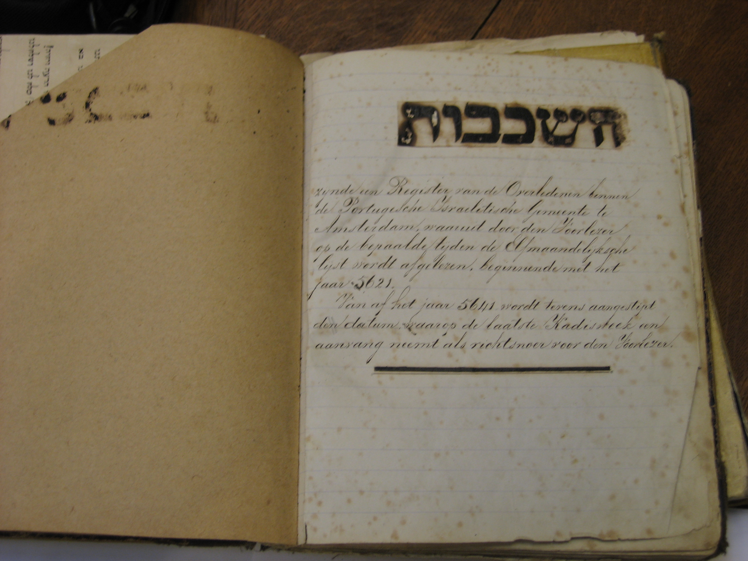 Since the 1970’s, the 11 months booklet hashcavot are recited during Shacharit, whilst the Shacharit hashcavot were recited during Mincha (swapped). Later, the Mincha hashcavot were stopped for unknown reason. Today, in Amsterdam, only the 11 months hashcavot are recited in the morning. In Amstelveen no hashcavot are read. Hashcavot booksNames of deceased members are written in various books. Different books are used at different occasions when hashcavot are recited. In total four (sets) of books are used for these Hashcavot: 1.