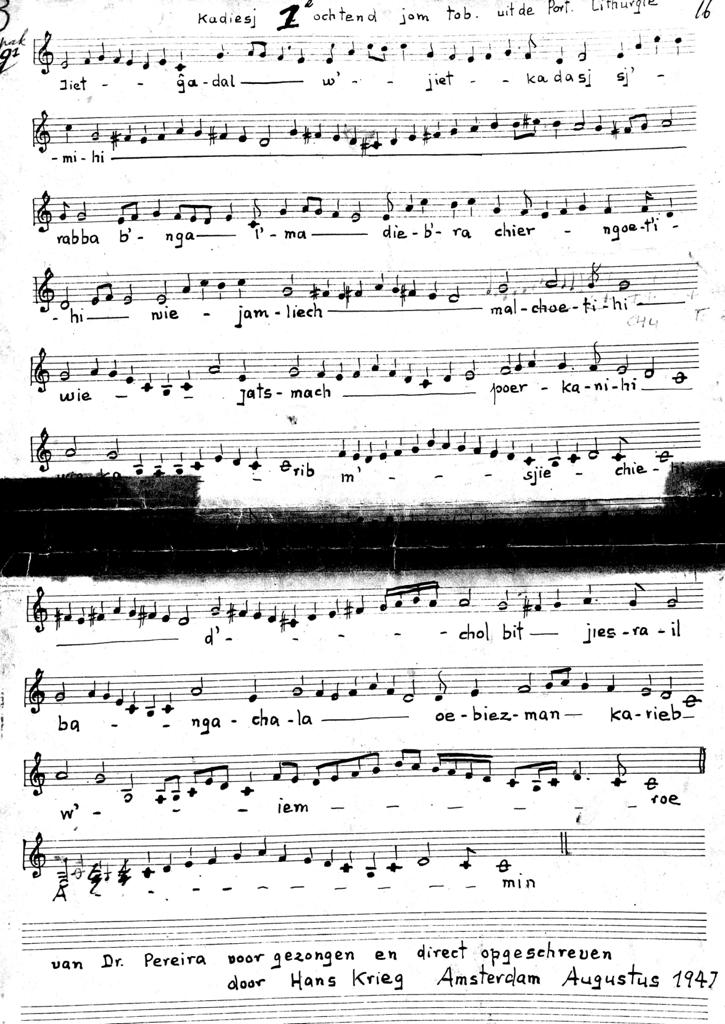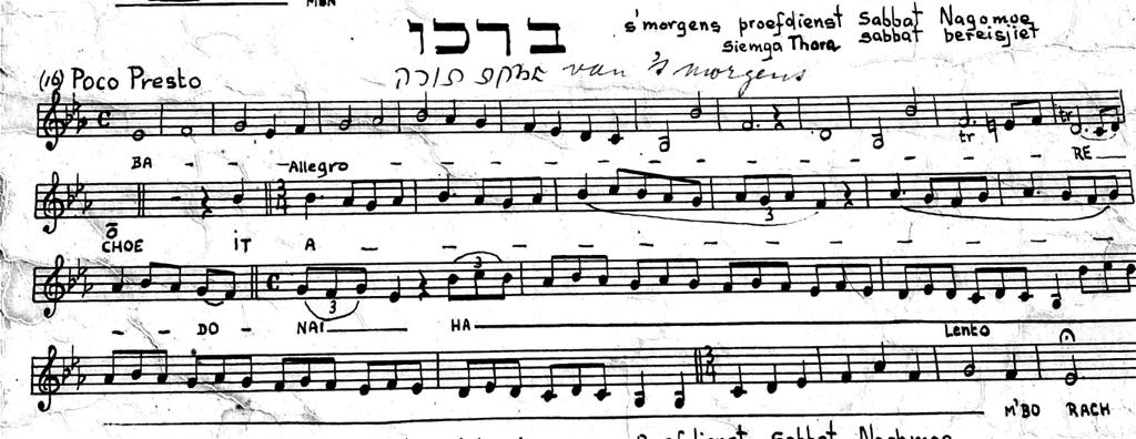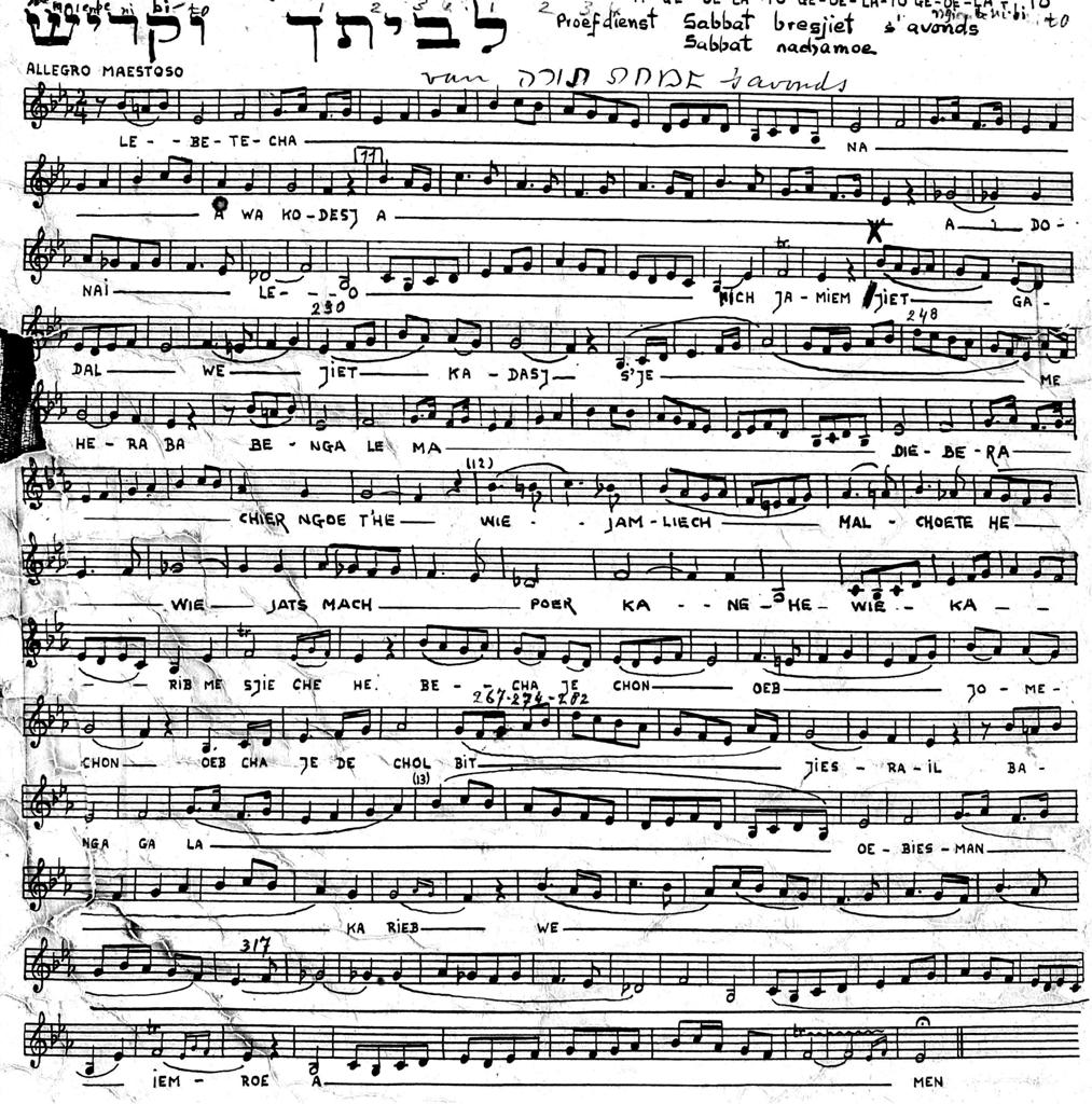 Mr. A. Israëls. In an effort to open this music to the public, a project has been defined to digitise and record as much as budget will allow. On this page I will bring next to each other the sheet music, the recordings where available and a reference to the tefilla where it belongs. In this way I bring the music into its context. Where possible, I link the recording to the original manuscript. In