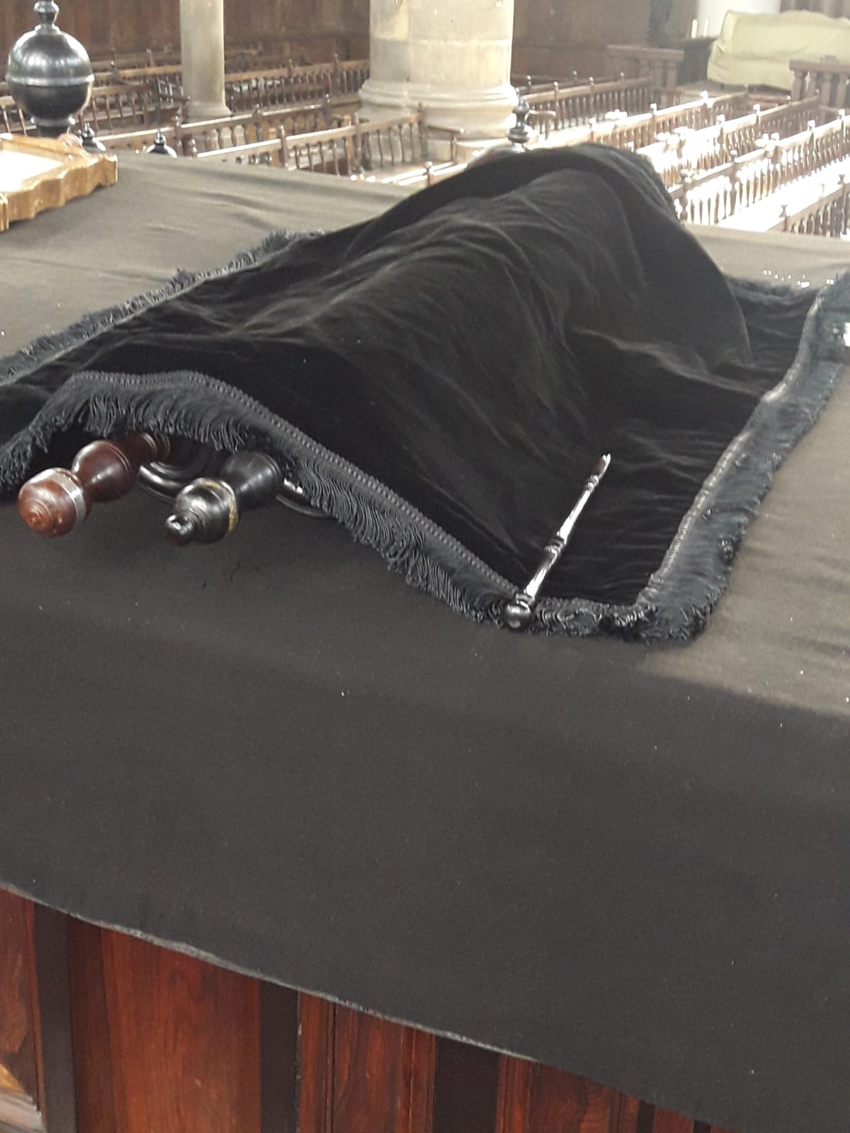 candlesticks on tebah, tora cover & pontairo (Yad), parochet