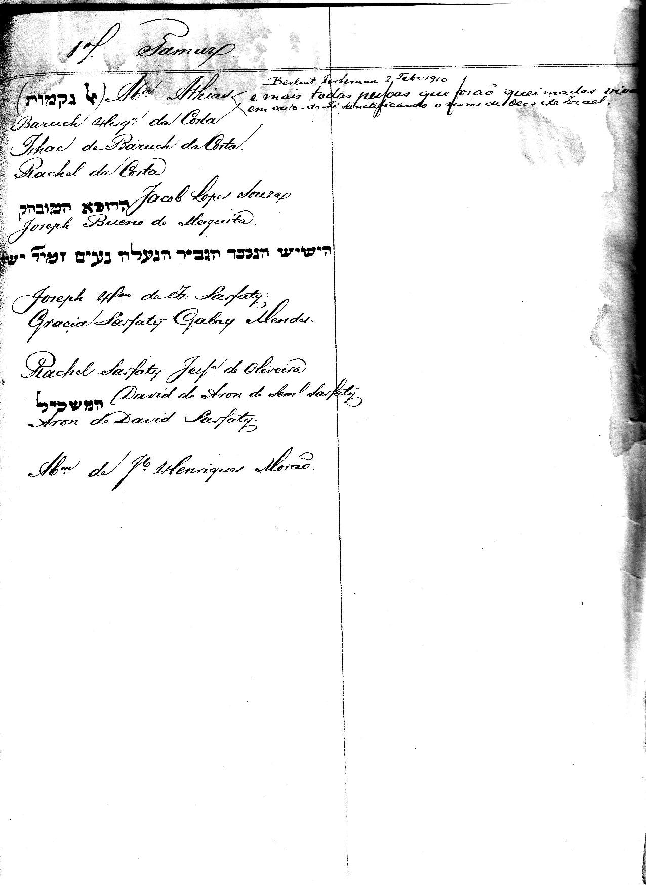 e.g. the second haschava. As can be seen form de Barrios, three persons where burnt but only Abraham Athias is mentioned in the haschava.