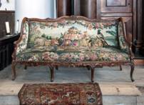 In the morning, before the reading, Sefer וזאת הברכה is brought to the Tebah by the Lavador, Sefer בראשית by the Chatan Tora and Sefer מפטיר by the Chatan Bershit. After the reading, Sefer וזאת הברכה is brougt back to the Hechal by the Chatan Tora, Sefer בראשית by the Chatan Bersihit.and Sefer מפטיר by the Lavador Two 18th century (1741) canapés are placed in front of the Hechal for the Chatanim and their acompanhador (escort), one on the left side of the Hechal and one on the right side. The Chatan Tora sits on the left side (when looking from the Esnoga, “Muiderstraat” side) and the Chatan Bereshit sits to the right side (“Meijerplein” side) [2]. The Chatanim sit on the inner side, the acompanhadores on the outer side.