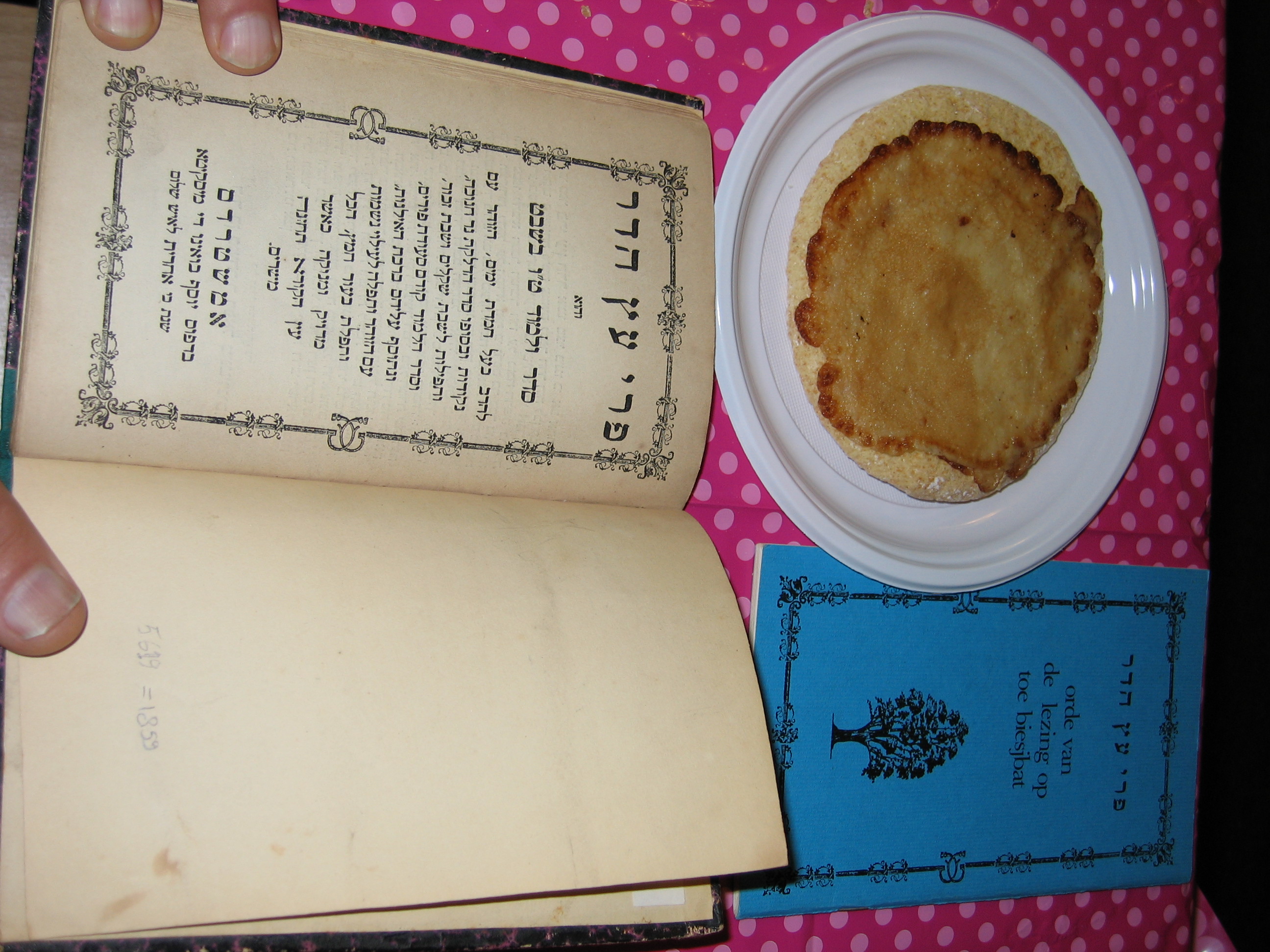 This list (in Dutch) shows which fruits are currently used and also has the recipe of the pancakes and of the "pleverkouk" or "plevekoek" pastry, see above picture. It seems that the plevekoek recipe came from Spain. The list has 15 fruits, the number corresponding to15 Shevat. The 1859 edition of פרי עץ הדר counts 20 fruits plus white and red wine.